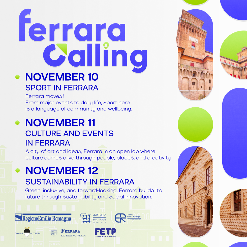 After two successful editions, Ferrara Calling is back. From 10 to 12 November 2025, the international webinar series will once again explore Ferrara’s vibrant identity through three key themes: Sport, Culture & Events, and Sustainability.